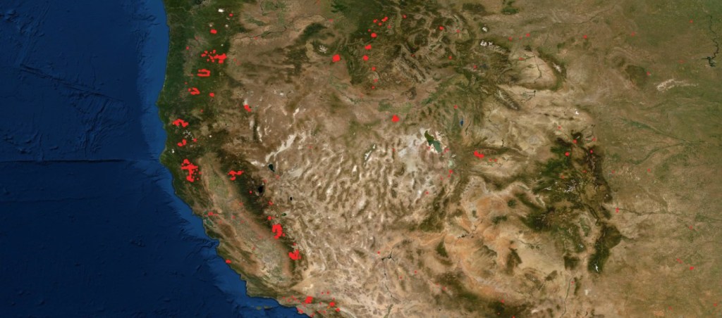 Fires raging through the California and Oregon forests are launching gargantuan amounts of carbon into the atmosphere. The fires began in early August and have destroyed more than 5 million acres to date killing nearly 30 people. The fires are the worst seen for years and have been linked to climate change by scientists.